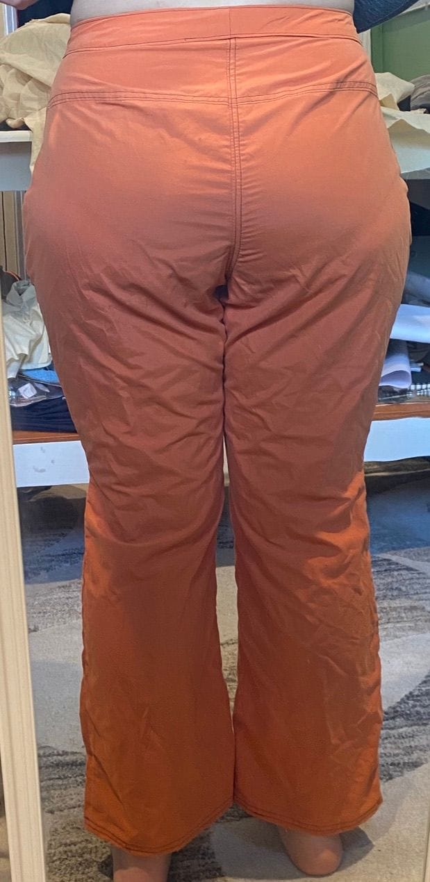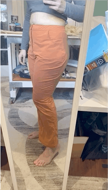 The thing that's keeping it from being a wearable muslin, however, is due to a combination between the fabric and the pattern: the fabric itself has zero stretch, and the pattern doesn't accommodate for the variation in body mass during movement. In other words, the pants fit pretty okay while I'm standing still, but I can't move in them at all!